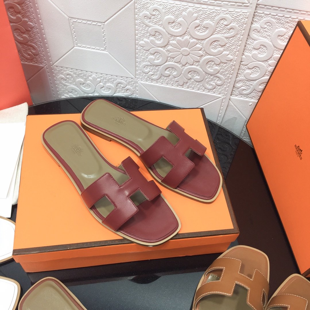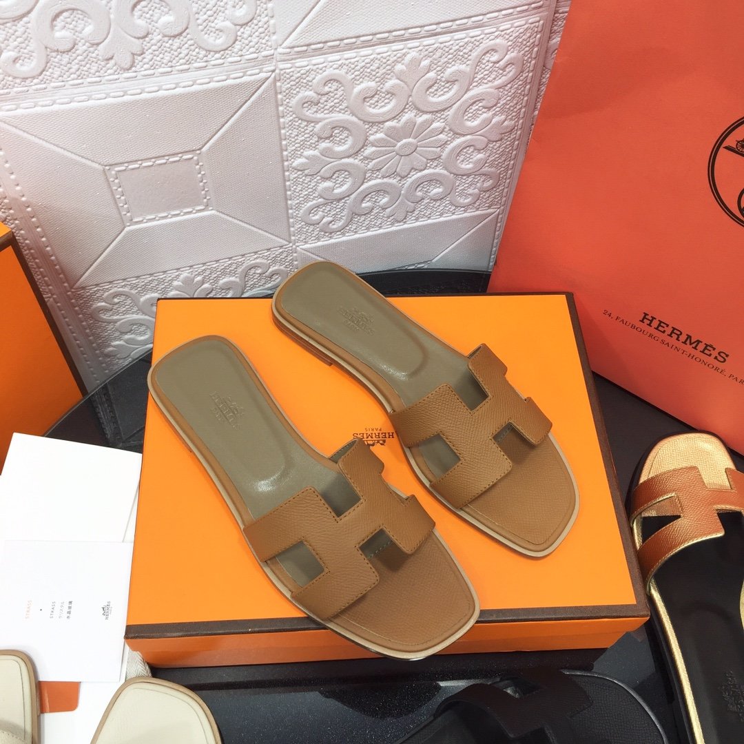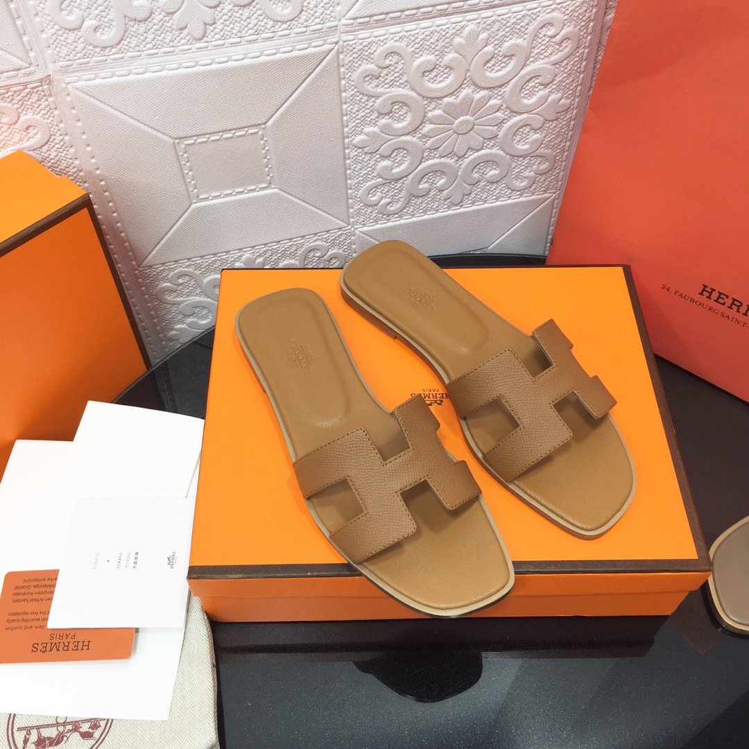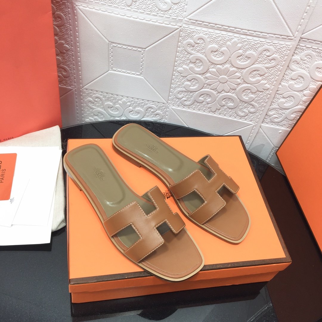 Hermès new pure leather classic Kelly flip-flops