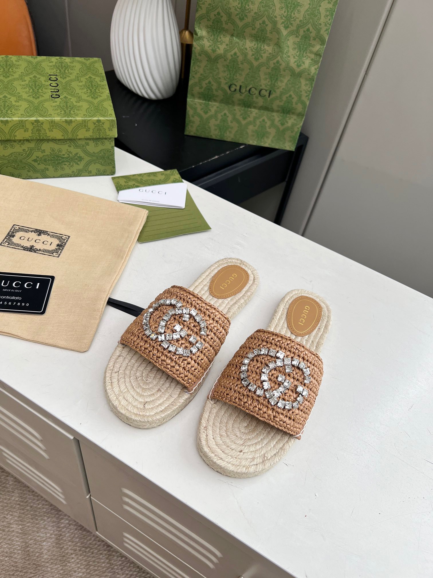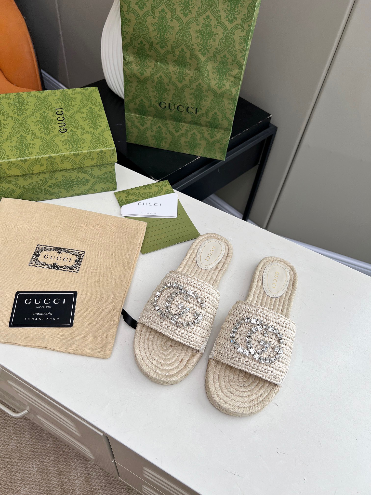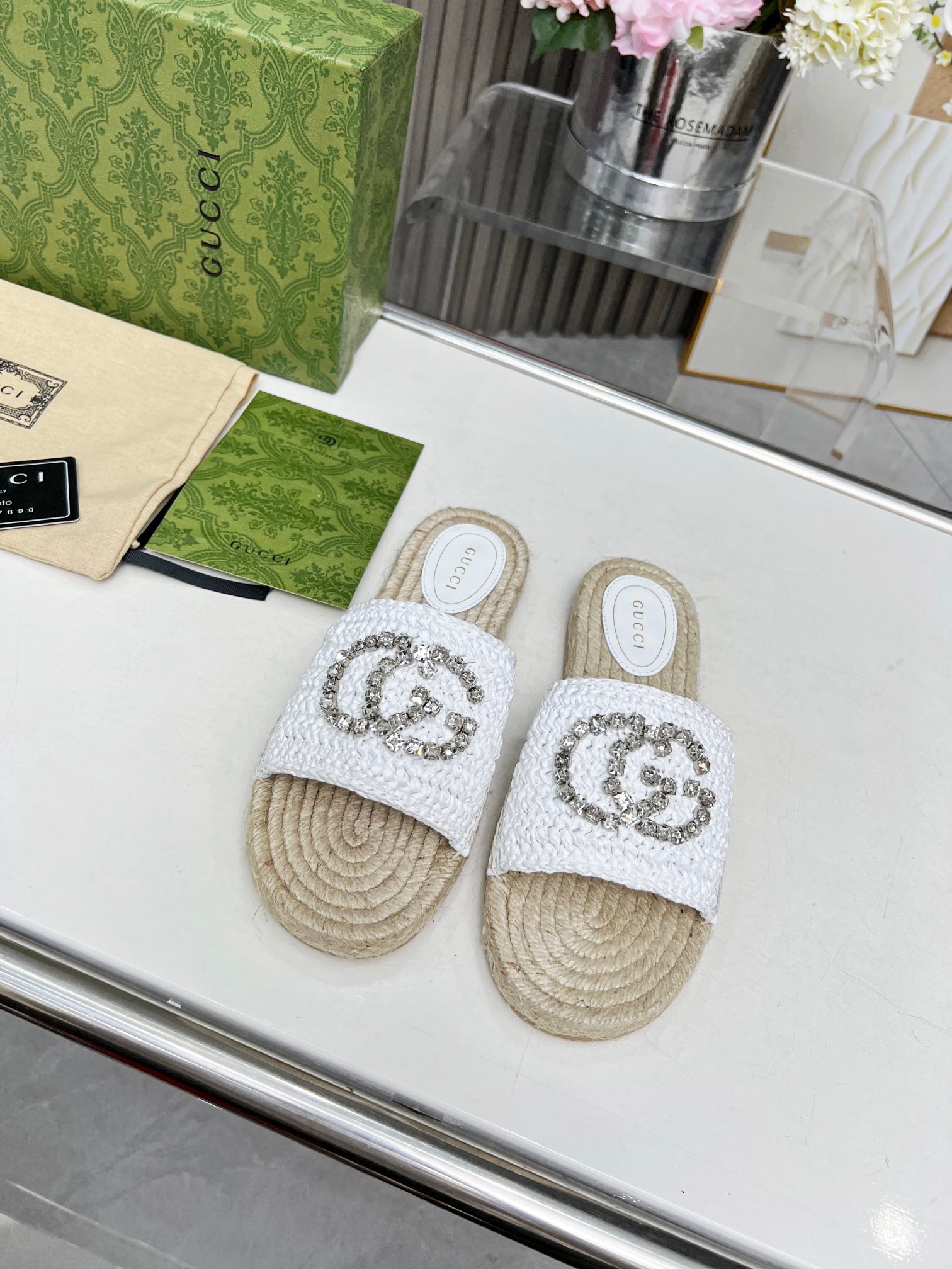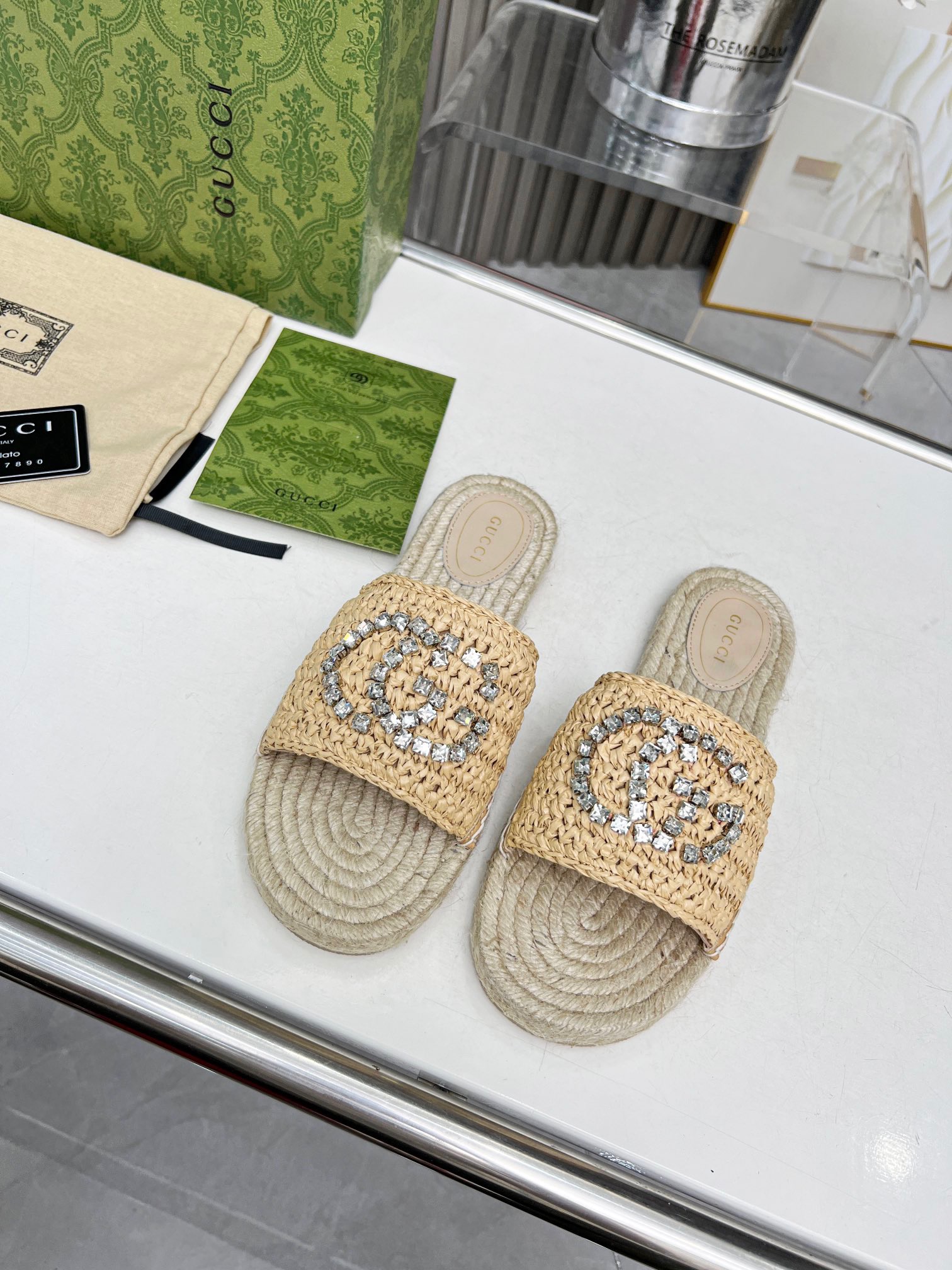 GUCCI Rhinestone Woven Slippers