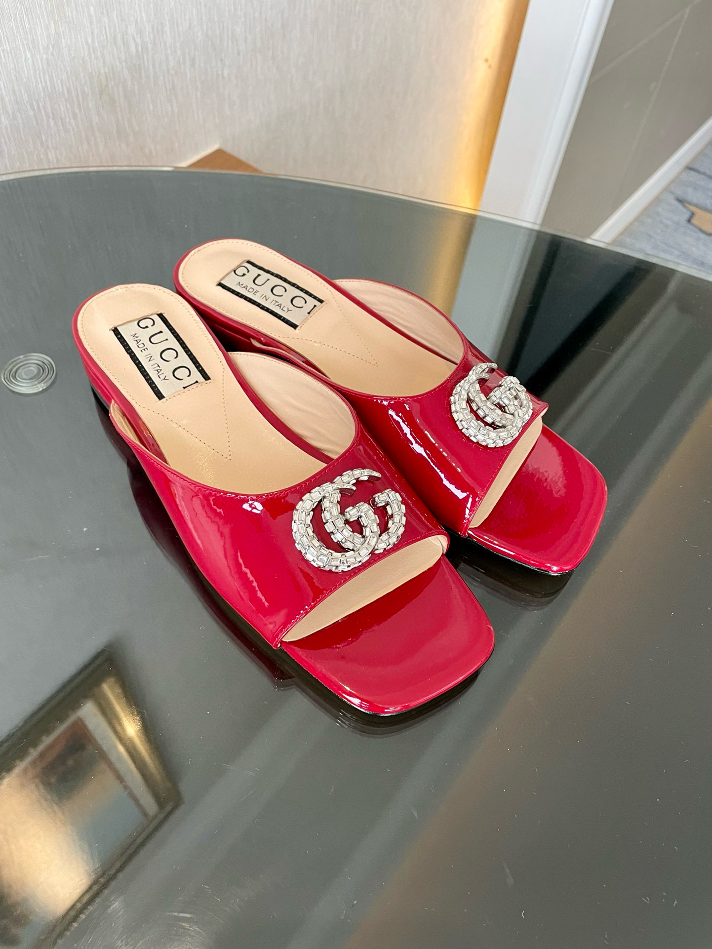 GUCCI Rhinestone slippers with buckle