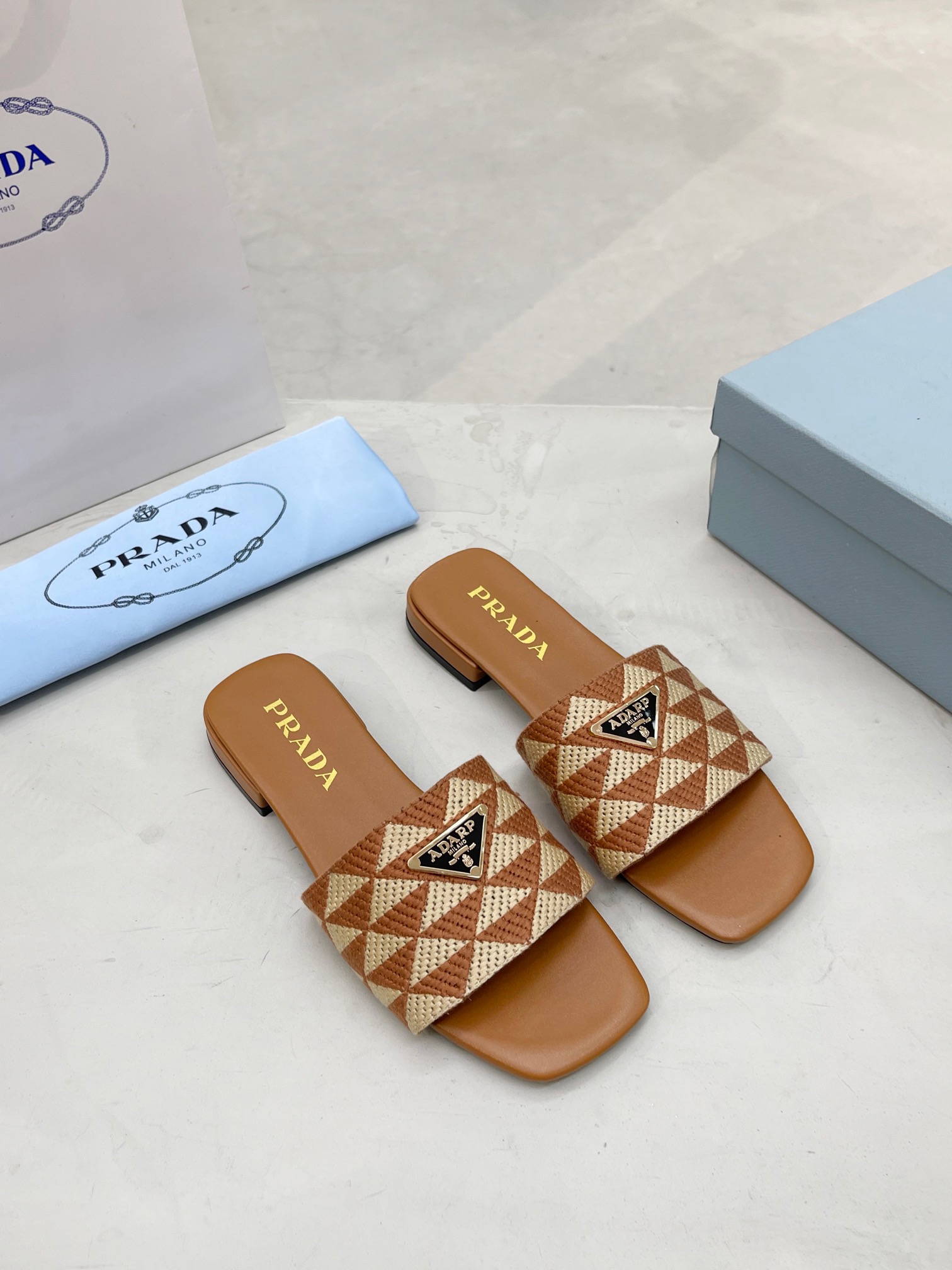 PRADA Triangle printed fabric slippers