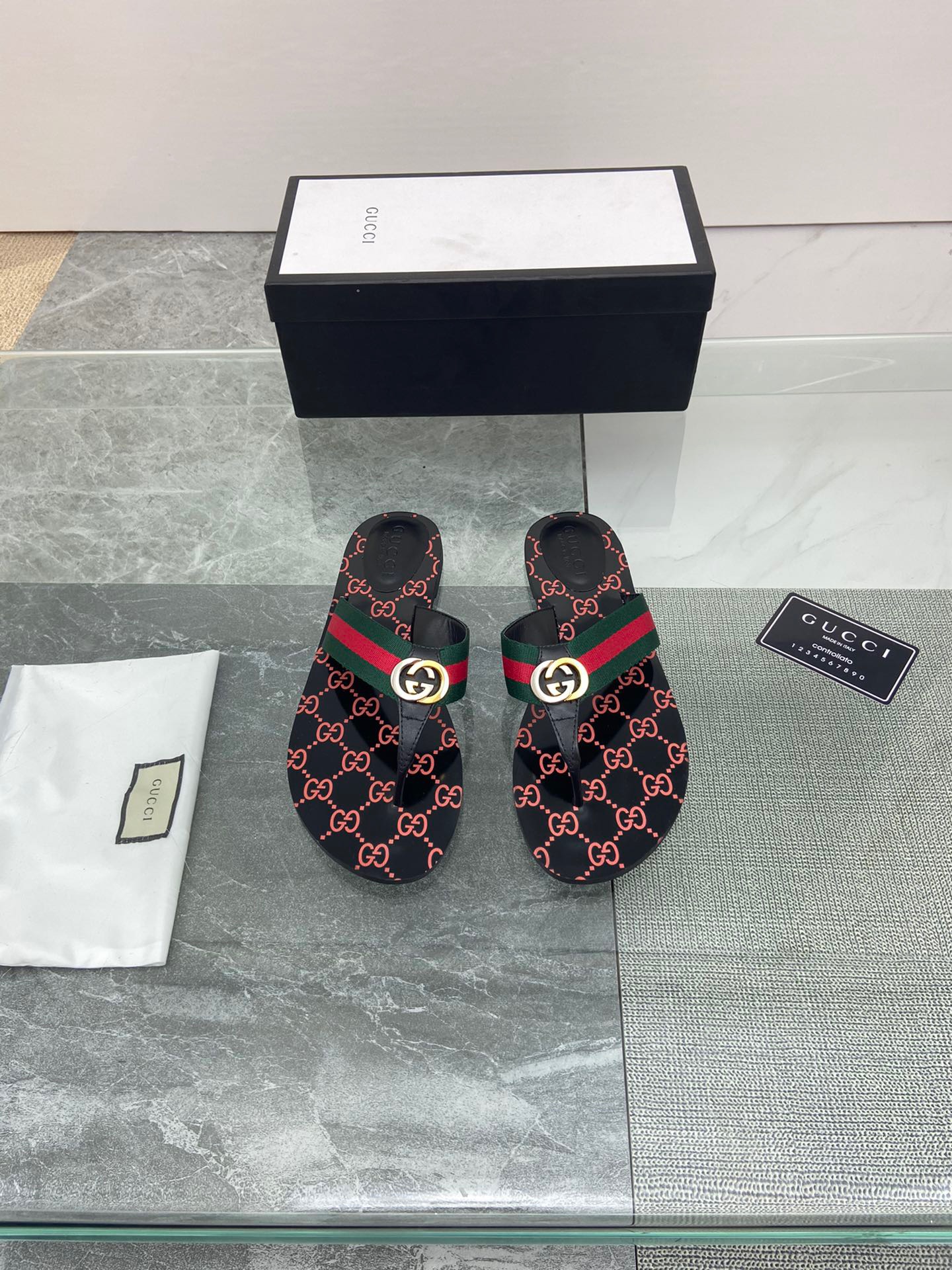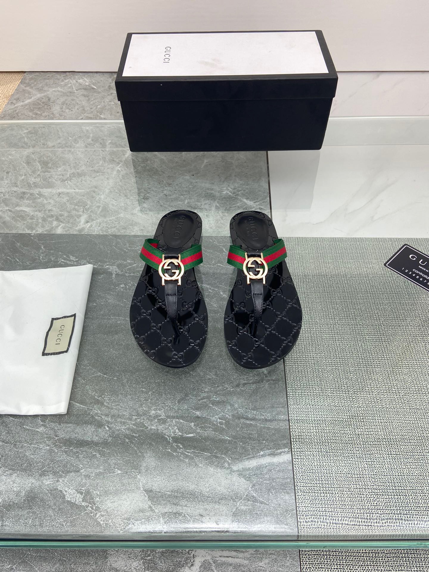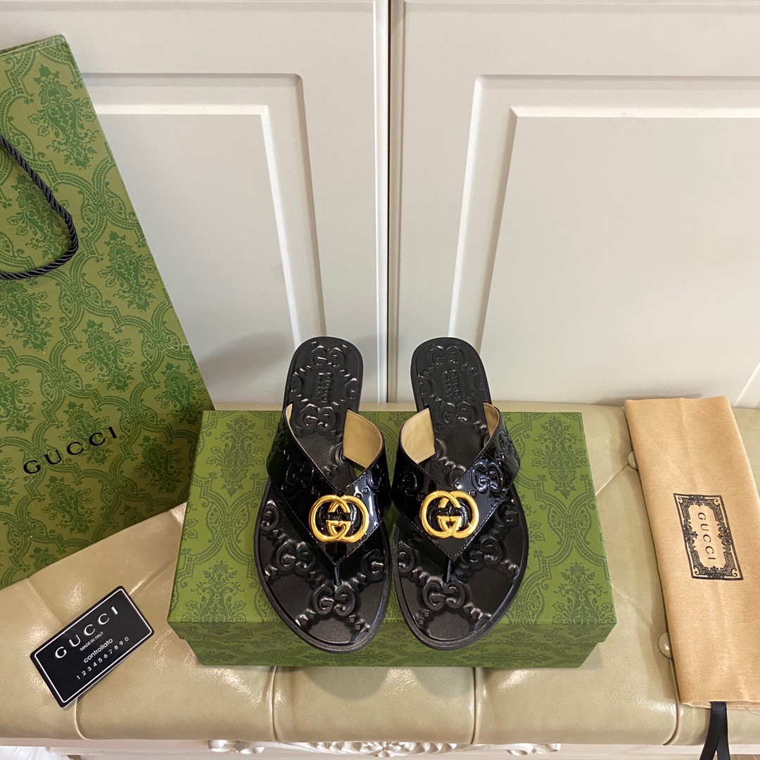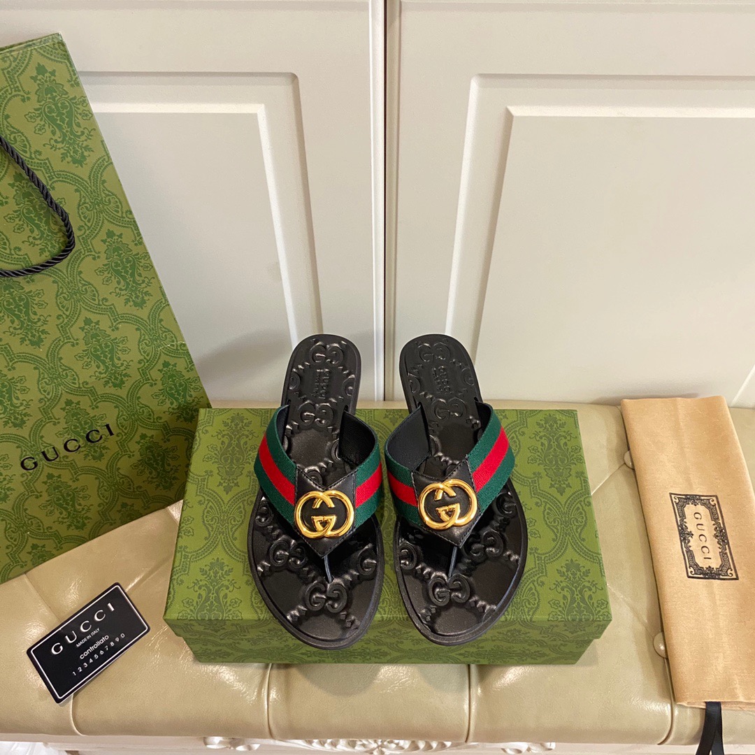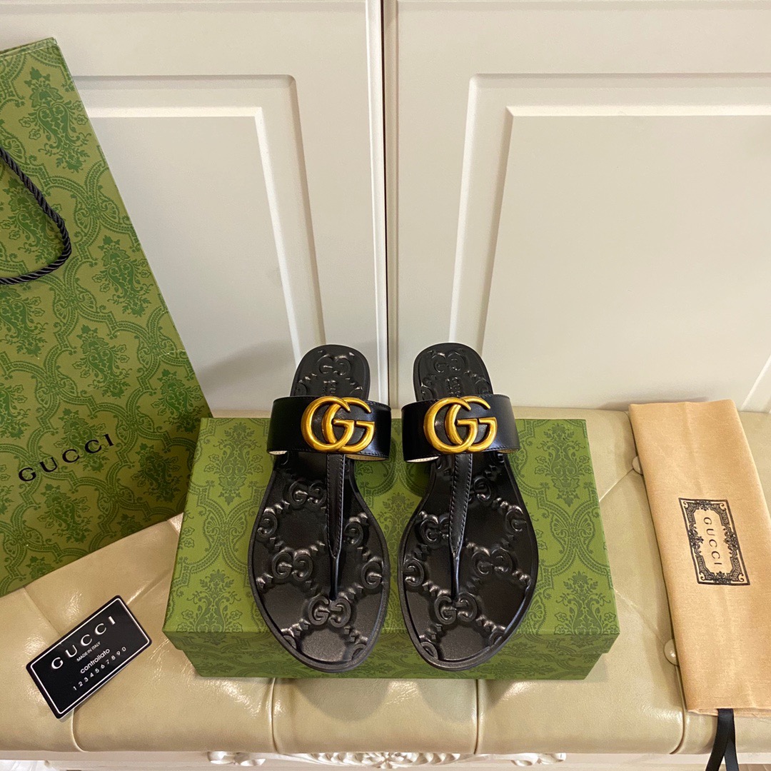 GUCCI Double G style leather flip-toe sandals
