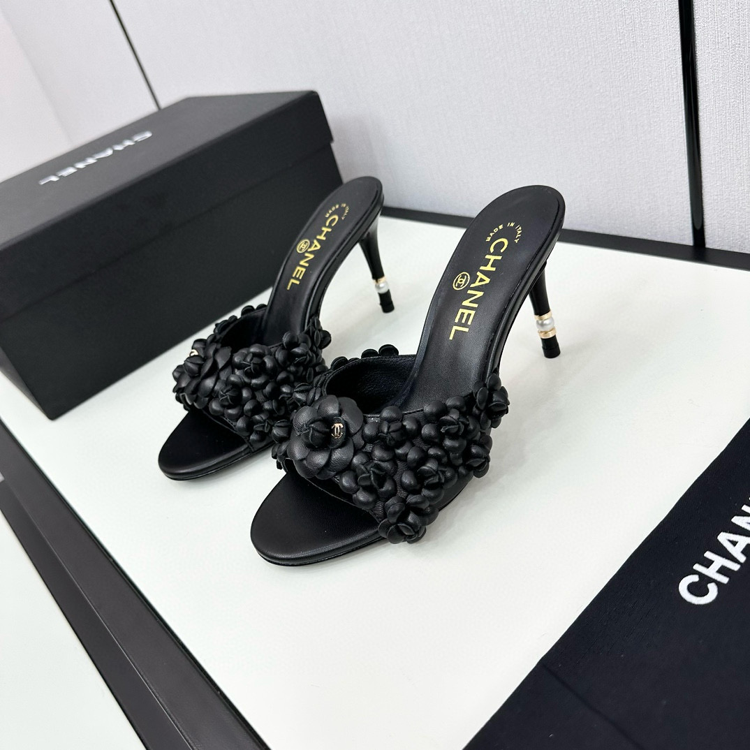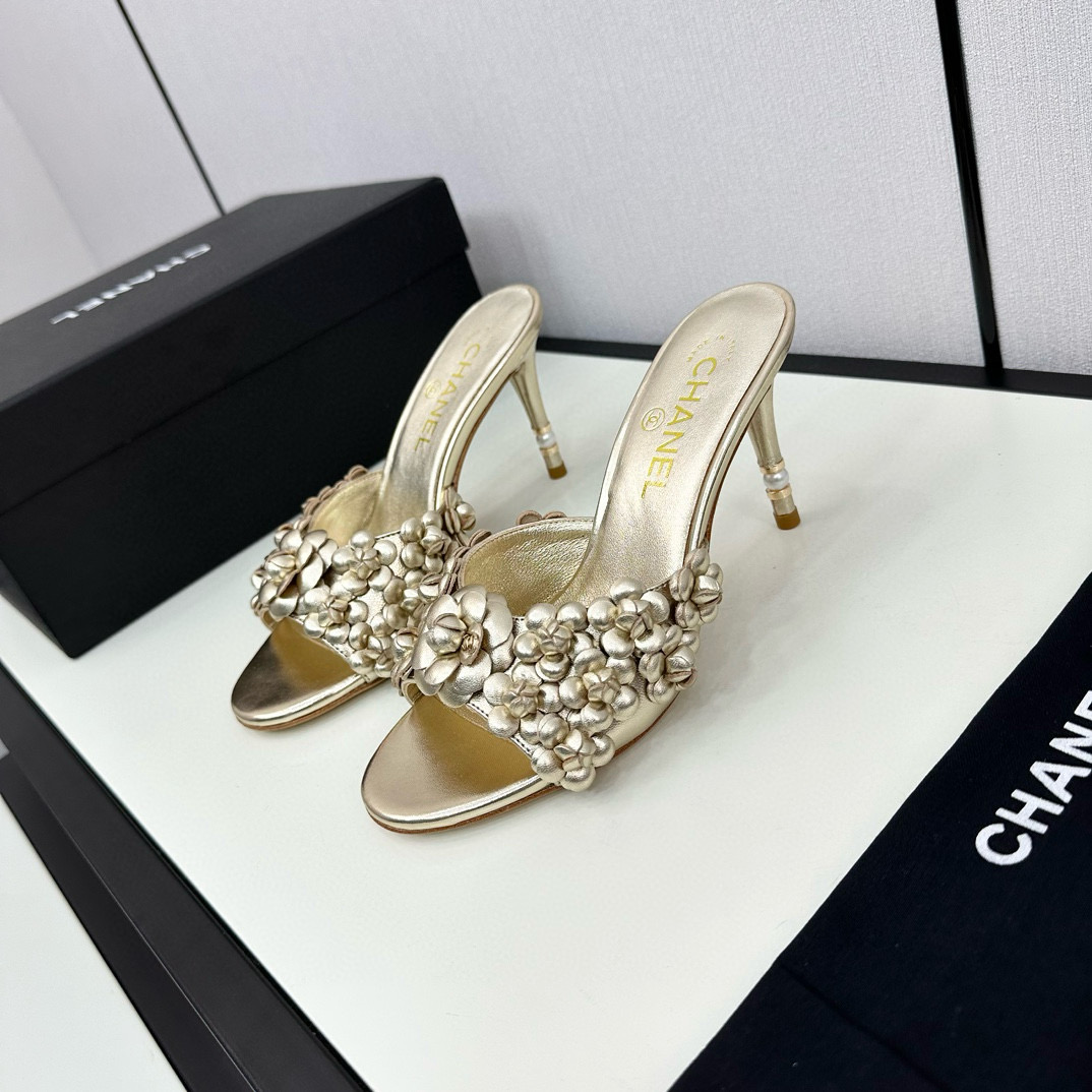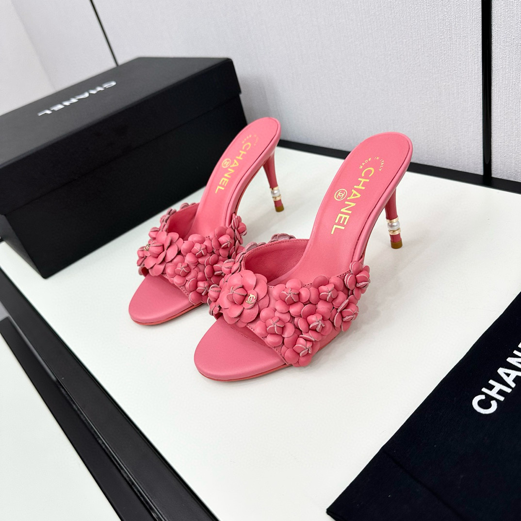 CHANEL floral high-heeled slippers