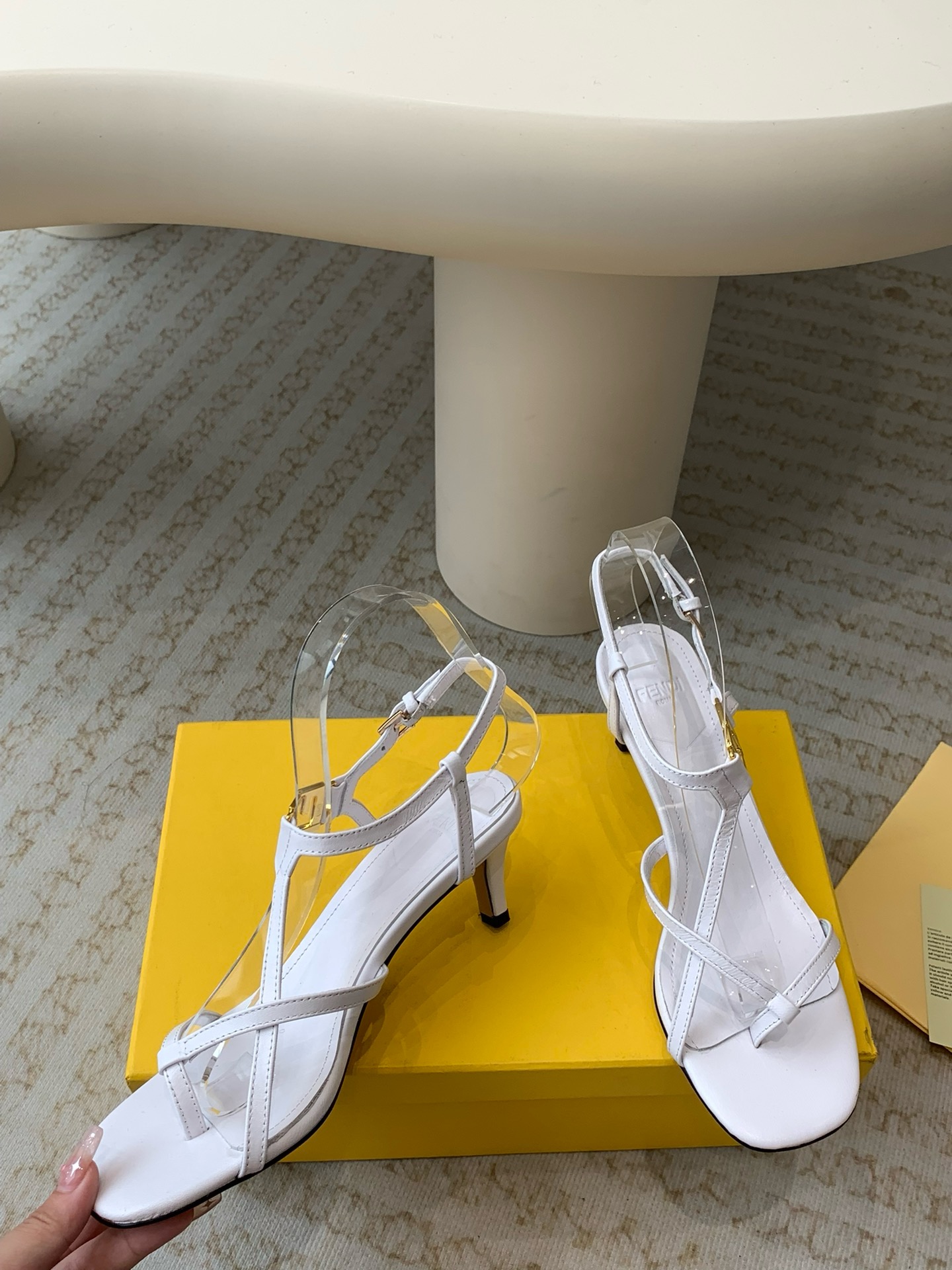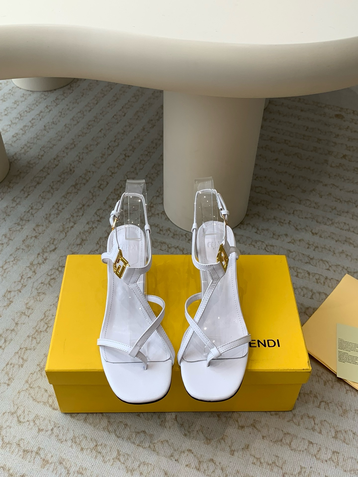 White leather medium-heeled sandals